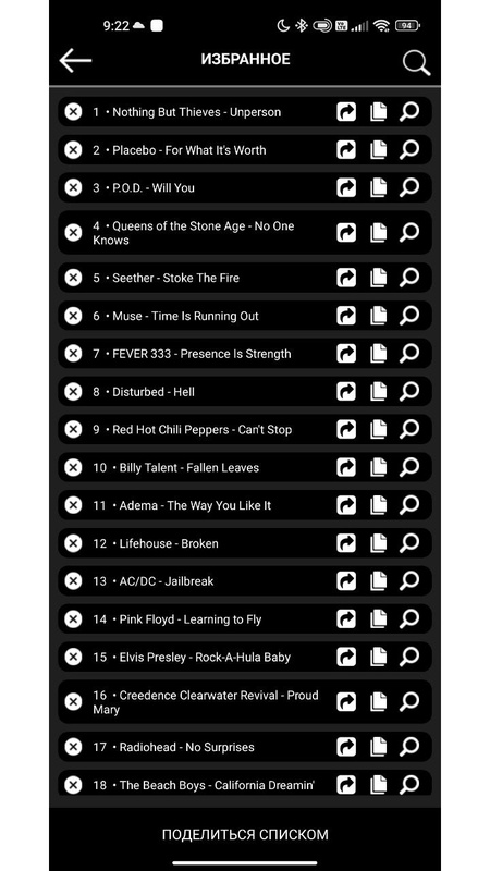 Слушая радио вы можете с легкостью добавить понравившуюся песню в избранное и в любое удобное время найти ее в популярных музыкальных сервисах. Нажав на обложку, можно посмотреть текст песни, а нажав на название песни прочитать информацию об исполнителе, поделиться песней, скопировать ее название в буфер обмена или добавить в избранное. В боковом меню можно выбрать радиостанцию, качество звучания и посмотреть список последних десяти песен.