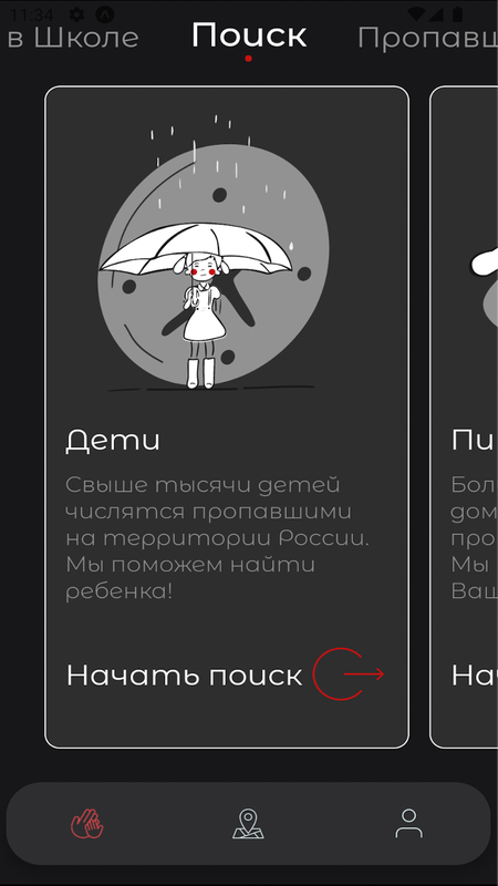 Мы представляем первую версию мобильного приложения проекта по поиску детей здесь и сейчас. Проект включает в себя ряд социальных продуктов касательно детей и животных, киднеппинга, Интернет Систему Оповещений о чрезвычайных ситуациях от соответствующих служб и ведомств, систему помощи в один клик в разделе «Я помогаю».