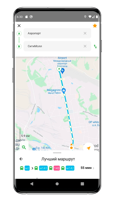 В нашем приложении вы сможете просто указать остановку начала вашего маршрута и остановку прибытия, а приложение само выстроит кратчайший маршрут с указанием пересадок.