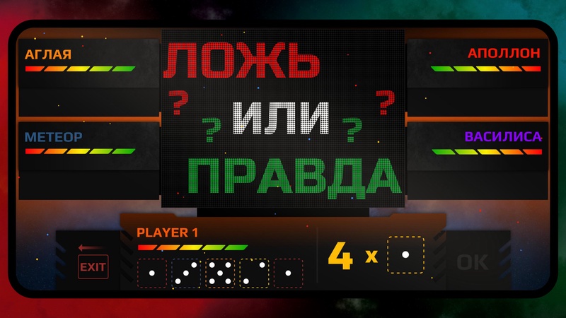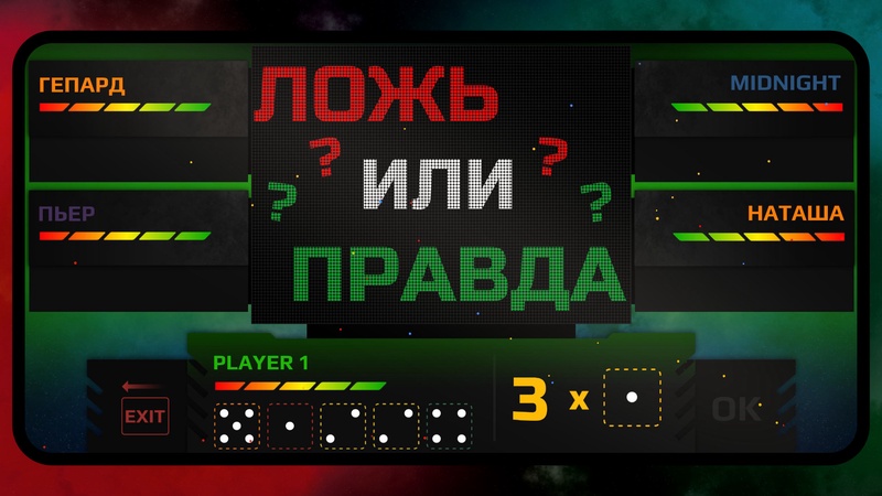 Кости обмана (Hyper Liar's Dice) - игра, в которой вам нужно предугадать количество кубиков с одним значением у всех игроков. Игроки по очереди должны назвать это значение, каждый раз его повышая. Правила игры таковы, что рано или поздно кто-то должен будет ошибиться. Задача игроков - не дать себя обмануть и своевременно распознать ложь.