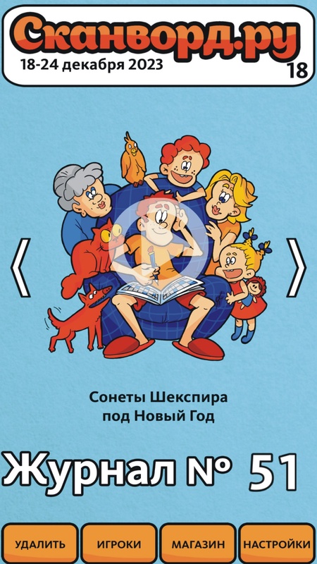 Сканворды в приложении разнообразные - попроще и посложнее, с фотографиями, с классическими вопросами или ассоциативными: «одним словом» либо «раз слово, два слово», как подсказки старца Фура. В любом журнале есть один англо-русский сканворд и один «дыркавнос», позже поймёте, почему его так назвали.