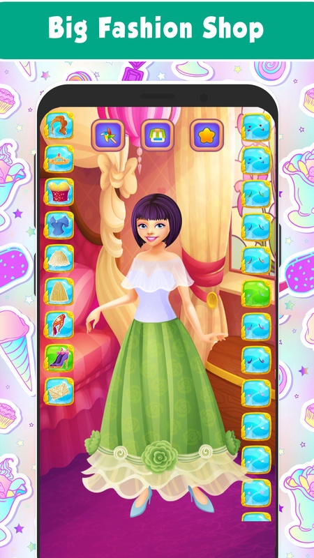 Выбирайте из множества маскарадных платьев, топов и юбок, перчаток, сумочек и туфель, чтобы ваша принцесса стала звездой вечера. Подбери модный наряд для каждой принцессы, подбери аксессуары и гламурную прическу из огромного гардероба. В игре более 150 предметов, без замков и встроенных покупок.