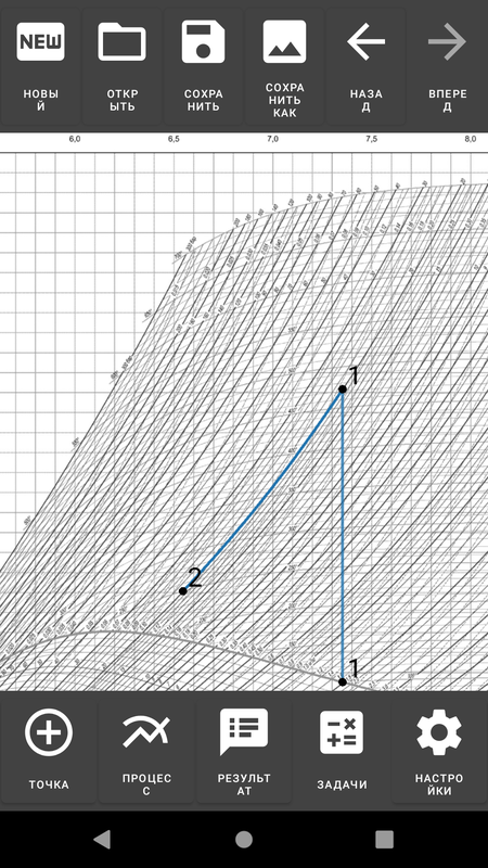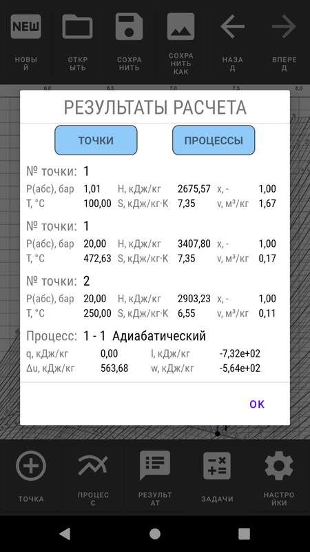 - Интерактивный график - с возможностью построения основных процессов водяного пара.