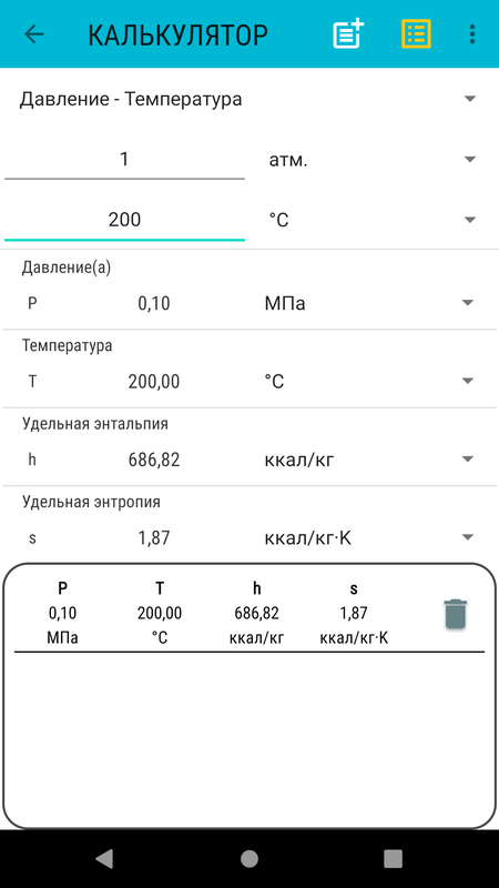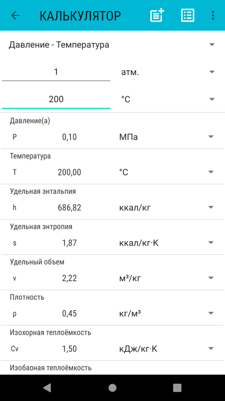 - Свойства состояния: давление, температура, энтальпия, энтропия, объем, внутренняя энергия, эксергия, удельная теплоемкость.
