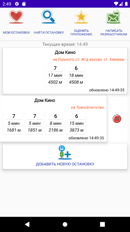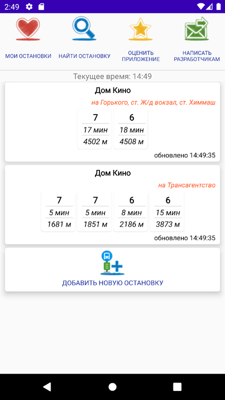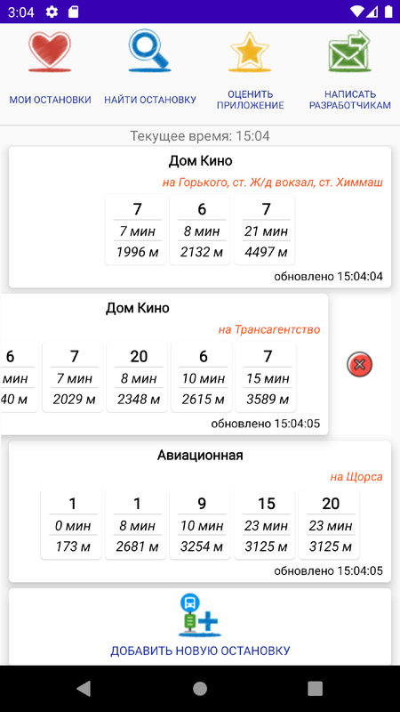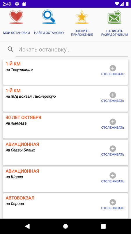 Приложение запоминает конкретные остановки — вам не нужно заново искать их данные. Вы можете следить только за нужным транспортом и быстро находить свою остановку.