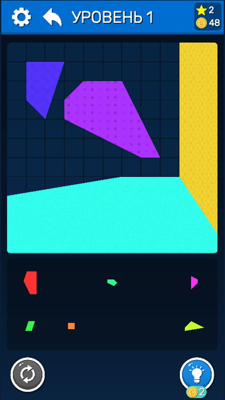 Игра "Танграм пазл" относится к жанру логических игр головоломок. Основная цель игры - заполнить игровое поле предлагаемыми геометрическими фигурами. Фигуры разной формы. По мере прохождения игры конфигурация фигур изменяется, а их размер увеличивается.