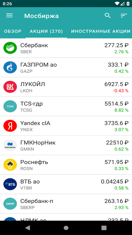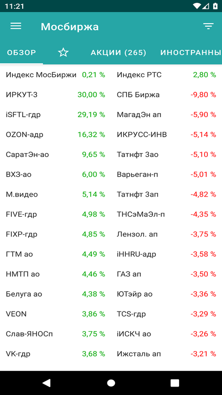 Мосбиржа.Сводка предоставляет информацию по акциям на Московской Бирже.