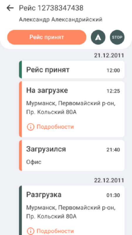2. Информация о времени погрузки и разгрузки;