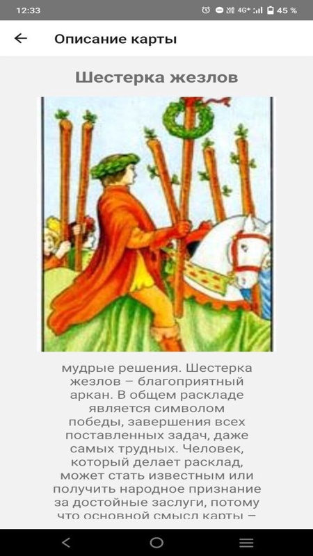 Приложение для гадания с использованием классической колоды Таро из 78 карт. Предлагает гадание на 1 или 3 карты с случайным выбором карт в прямом/перевернутом положении. Используйте исключительно для развлечения.