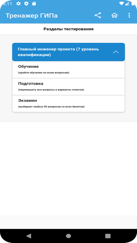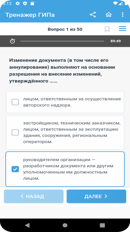 Тест состоит из 440, представленных в оценочном средстве для оценки квалификации Главный инженер проекта (специалист по организации архитектурно-строительного проектирования) (7 уровень квалификации) и является тренажером для подготовки к теоретическому этапу сдачи независимой оценки квалификации (НОК).