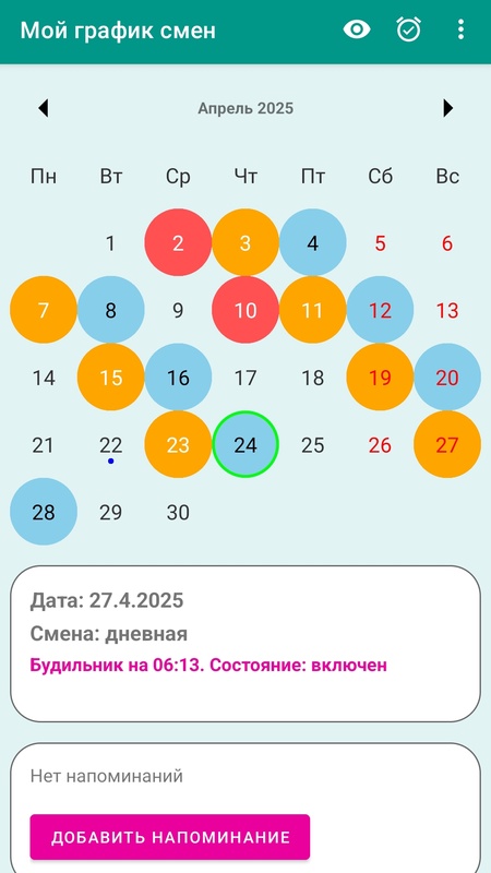 Удобное приложение для планирования вашего рабочего расписания с полезной статистикой и возможностью расчёта вашего дохода.