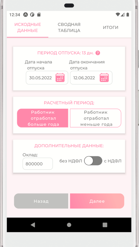 На основе введенных данных калькулятор отпускных мгновенно рассчитает: