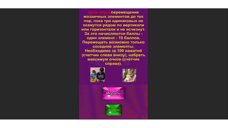 Необходимо располагать мозаичные элементы по три до исчезновения.