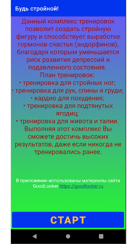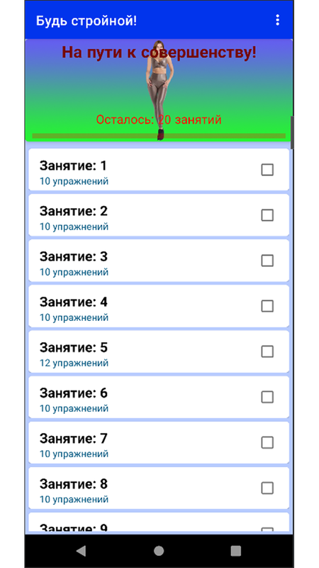 В приложении предлагается комплекс тренировок для создания стройной фигуры.