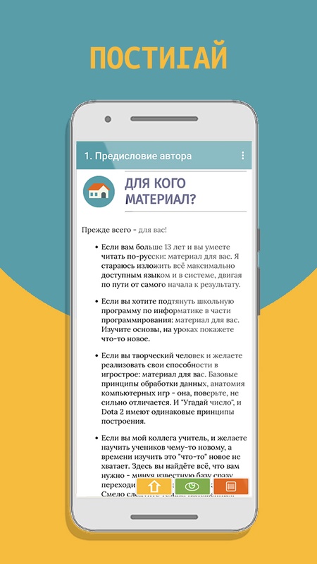 Почему именно этот учебник? Я уже почти два десятка лет работаю преподавателем информатики и сталкиваюсь с одной иногда раздражающей вещью. Большинство материалов, призванных "научить программированию", на самом деле не учат, а являются своеобразными справочниками по языку: синтаксис, функции, результат. Согласитесь, даже если мы выучим весь русско-английский словарь, то на английском не заговорим. Потому что для разговора нужно знать ещё тысячу тонкостей: времена, склонения, использование местоимений и предлогов и прочее.