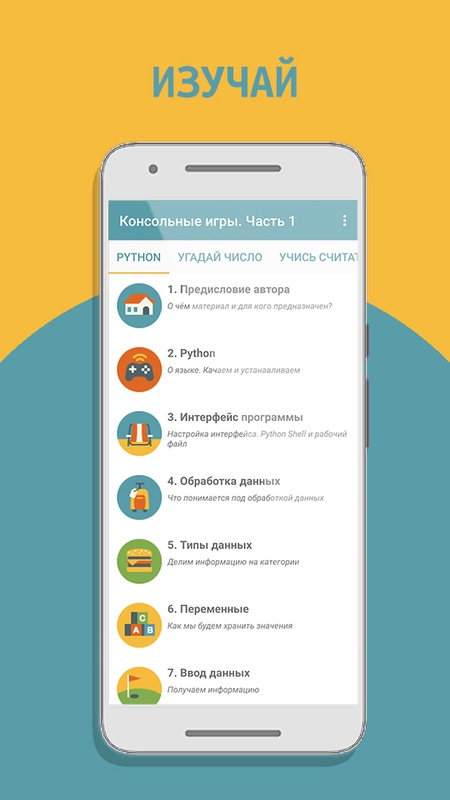 1. «Угадай число». Цель игры: развлечение и анализ числовых рядов. Подойдёт для детей, которые учатся считать. Вы, если вы родитель, можете написать игру конкретно для своего ребёнка, заложив в программу особенности и пожелания. Например, выбрать диапазон чисел или установить правила счёта.