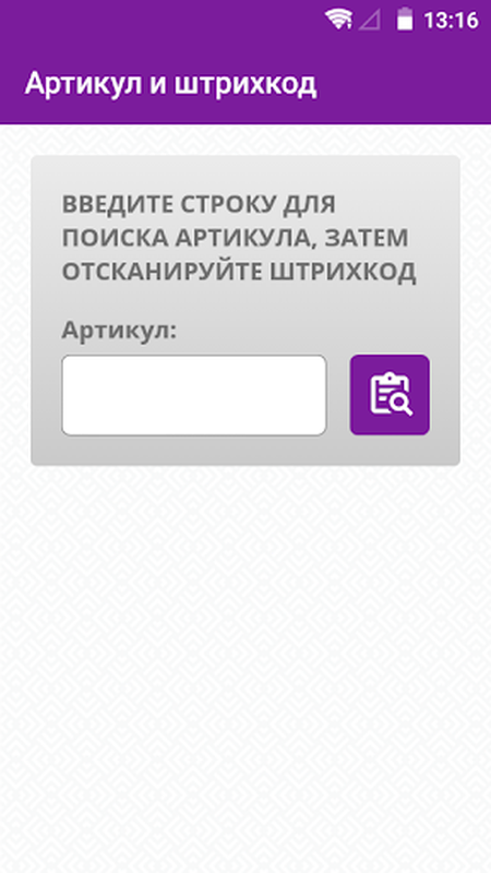 С помощью данного приложения можно осуществлять поиск артикулов и добавление к ним штрихкодов