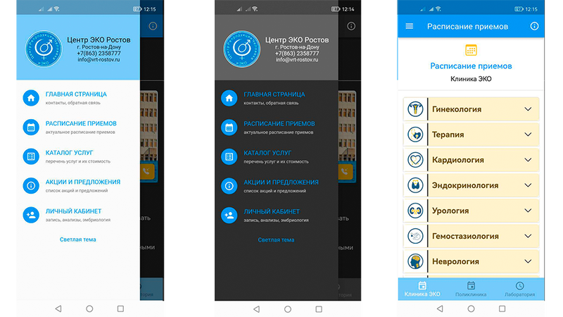 Также в приложении включен доступ пациента в личный кабинет с возможностью записи на прием, просмотра архива проведенных исследований и анализов, получение