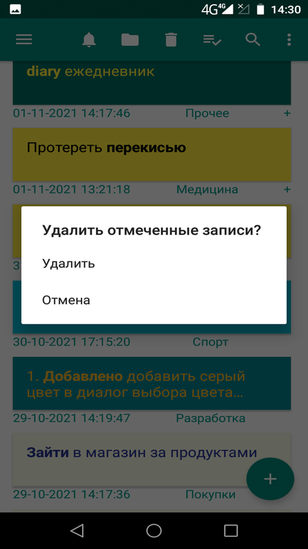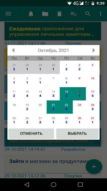 Ежедневник позволяет добавлять и редактировать заметки в разрезе различных категорий.