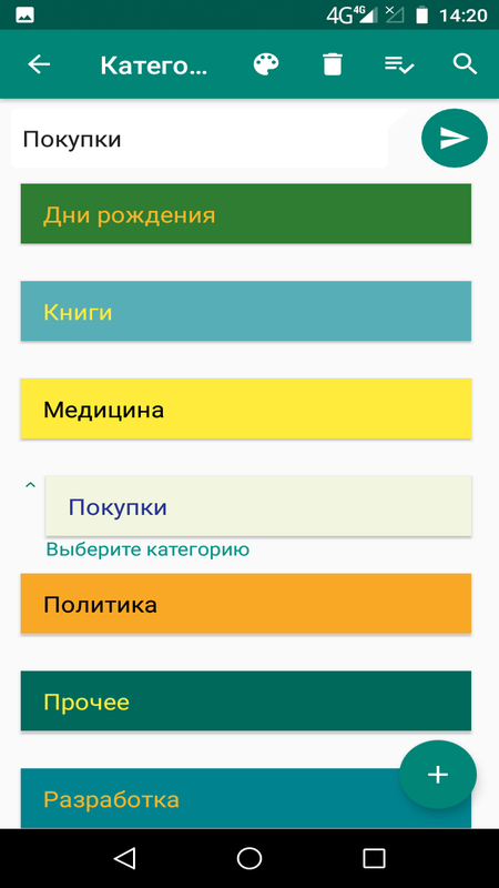 Каждую заметку можно отнести к выбранной категории, для категории кроме названия можно выбрать свой цвет для шрифта и фона.