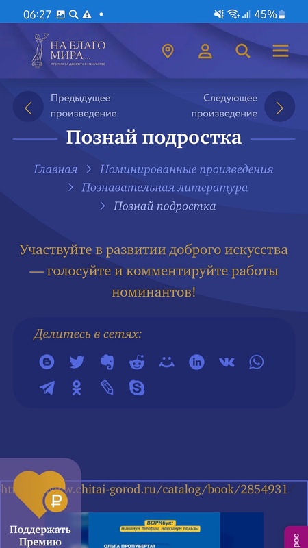 Приложение портала премии за доброту в искусстве "На благо мира"
