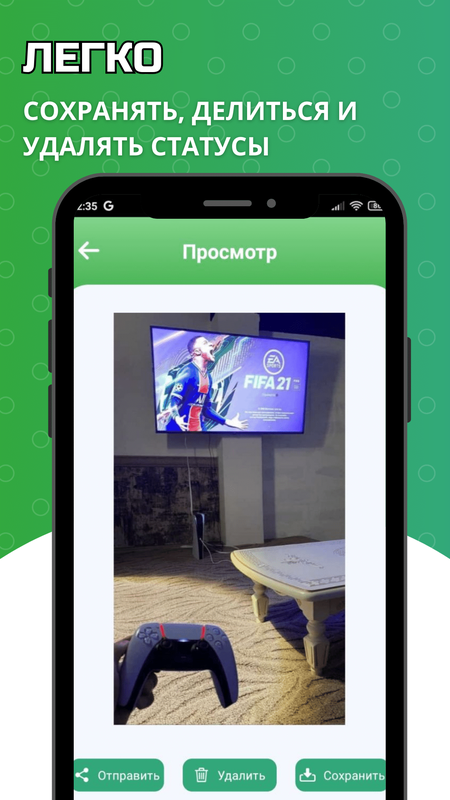 ▶️ Проигрывание внутри приложения: Смотрите видео статусы в высоком качестве в встроенном HD видеоплеере без необходимости загружать их.