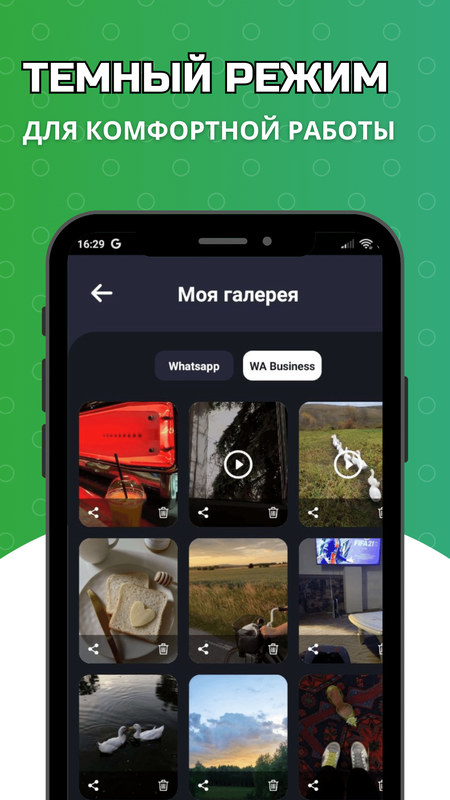 🖼️ Встроенная галерея: Не нужно искать сохраненные статусы ватсап по всему телефону – наслаждайтесь ими в удобно организованной галерее внутри приложения.