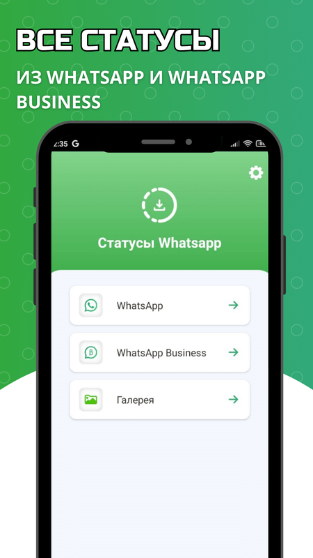 Приложение позволяет скачать статусы из WhatsApp и WhatsApp Business. Приложение имеет интуитивно понятный интерфейс и лаконичный дизайн, что делает просмотр, управление и обмен статусами вотсапп более эффективными.