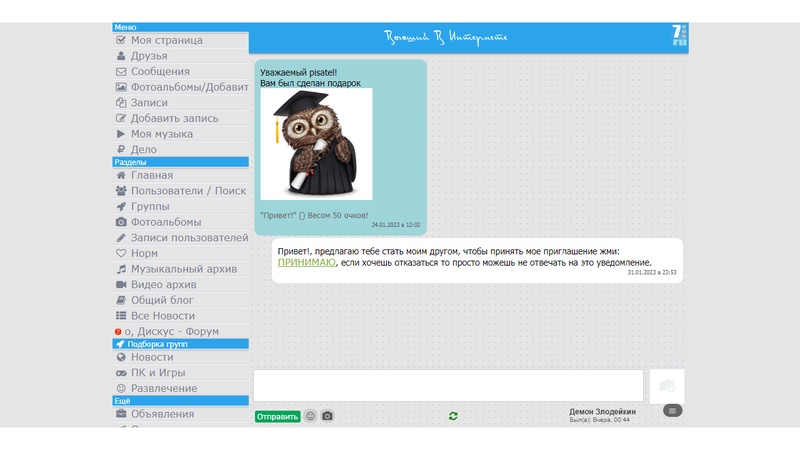 Социальная сеть с обычным набором возможностей – фото , видео, записи, комментарии и группы . А также множество возможностей от объявлений и рейтингов , до форума и каталога организаций. Интересные новости и обсуждения , фото и комментарии – думаю многие найдут что то интересное на портале Высший в Интернете.