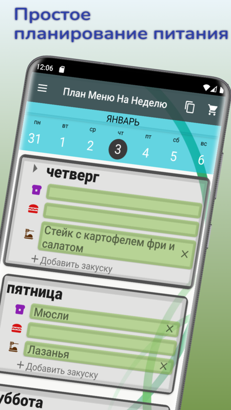 Это удобный инструмент для маленьких и больших семей, позволяющий управлять своим недельным календарем меню и планом питания.