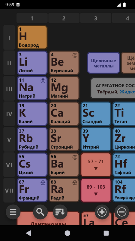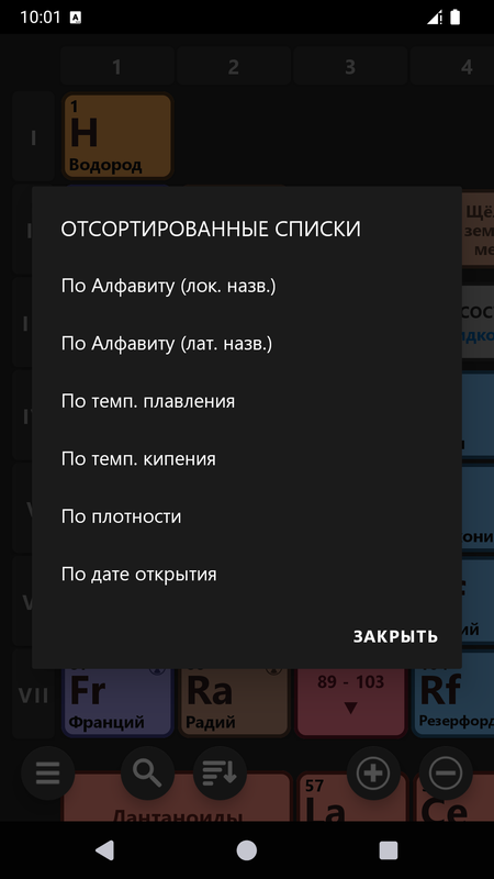 ★ Списки отсортированные по: алфавиту, температурам плавления и кипения, плотности и так далее