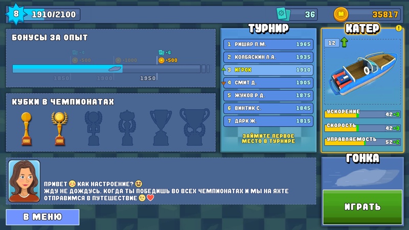 Динамичные гонки на катерах с прокачкой и чемпионатами.