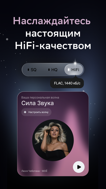 Переносите свои любимые треки из других аудиосервисов и слушайте в HiFi-качестве. Добавляйте музыку в личную коллекцию, создавайте плейлисты и делитесь ими с друзьями в социальных сетях.