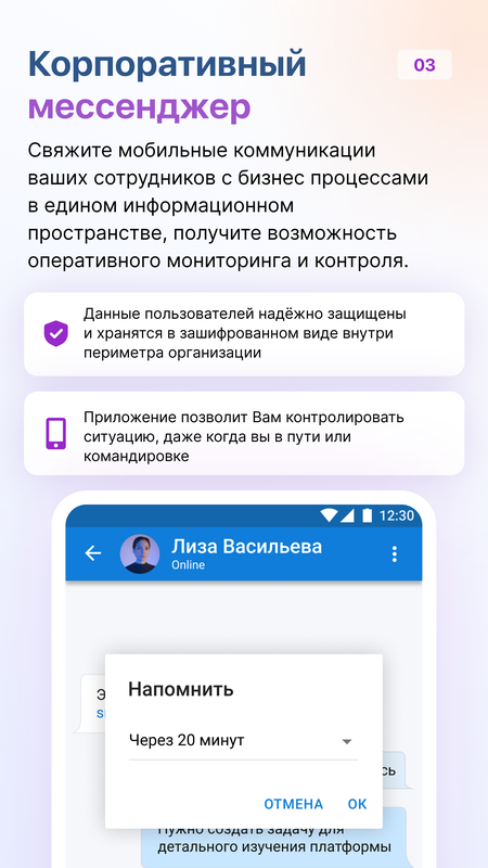 ✓ корпоративный мессенджер с коллегами и партнёрами;