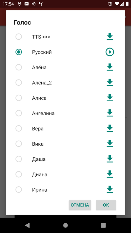 • поддержка Android TTS (text-to-Speech)