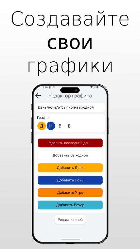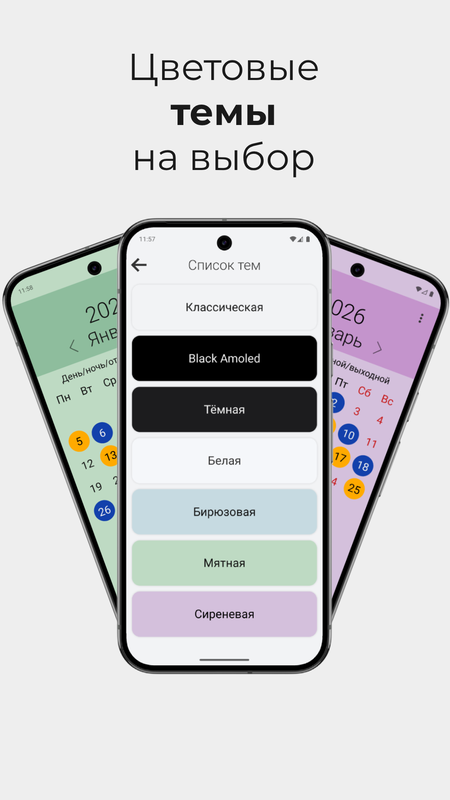 WorkTime - философия приложения: простота и удобство, никаких лишних настроек, достаточно один раз создать или выбрать свой график из шаблонов и понравившуюся тему.