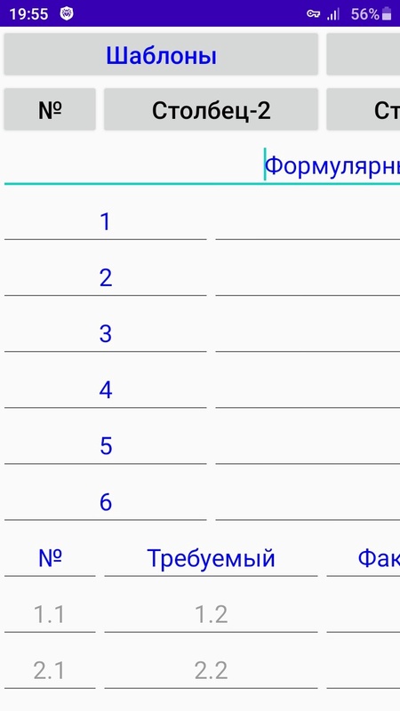 Кнопка [Формулярный бланк] переход к Экрану-2 с формулярным бланком.