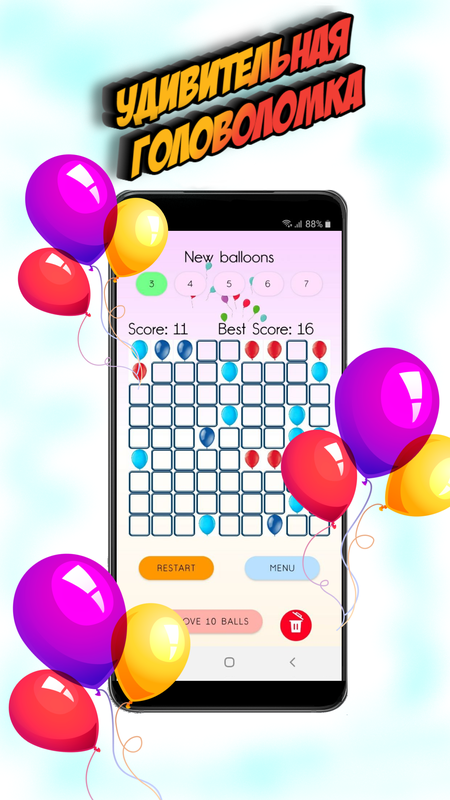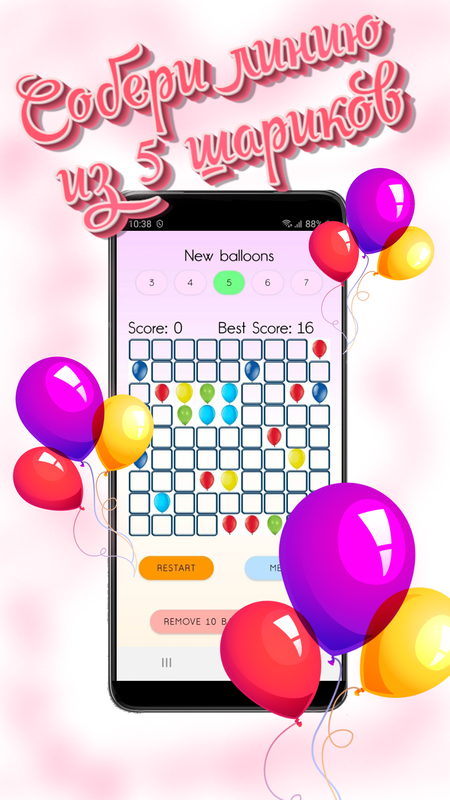 Собирайте горизонтальные и вертикальные линии из шариков!