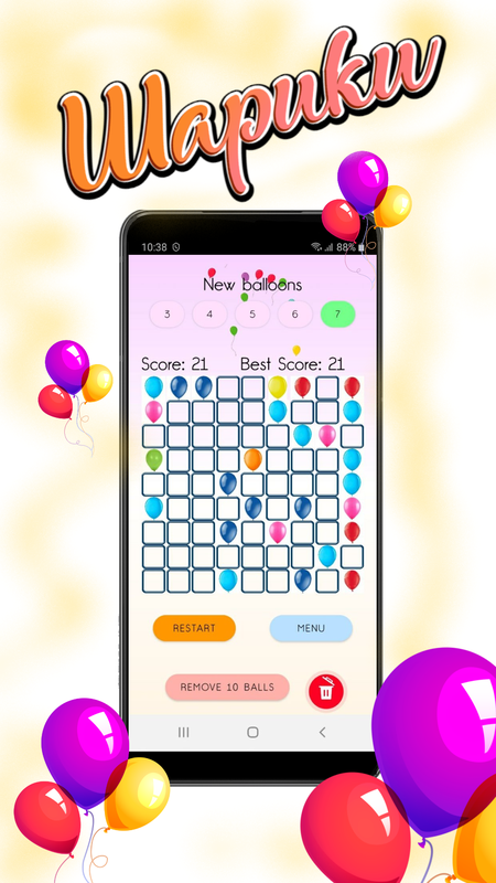 Шарики будут исчезать, когда вы соберете линию из 5 или более шариков.