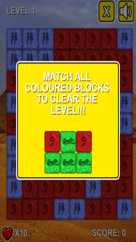 Цель игры - очистить поле, собрав два или более блоков одного цвета. Будьте осторожны: вы будете терять жизнь за каждый пройденный блок. Вам понадобятся все ваши логические навыки и хорошая стратегия, чтобы набрать высокий балл в этой сложной головоломке - готовы ли вы к поездке в Египет?