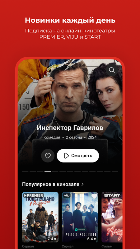 - Доступ к популярным подпискам онлайн-кинотеатров: START, PREMIER и VIJU в одном приложении