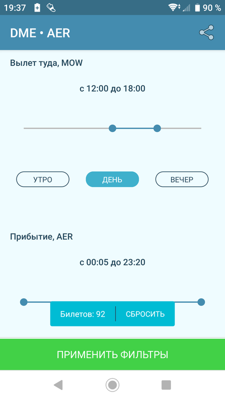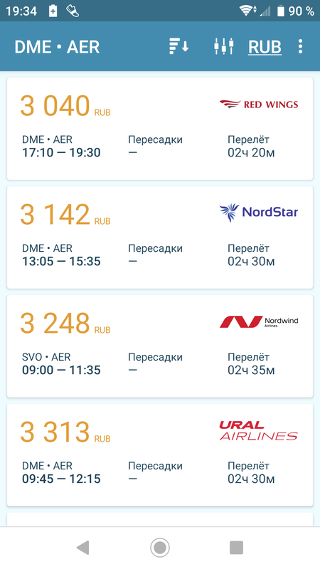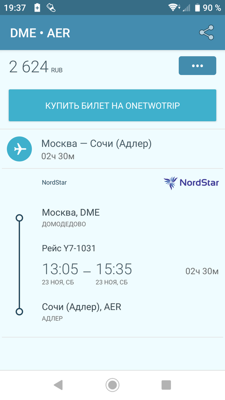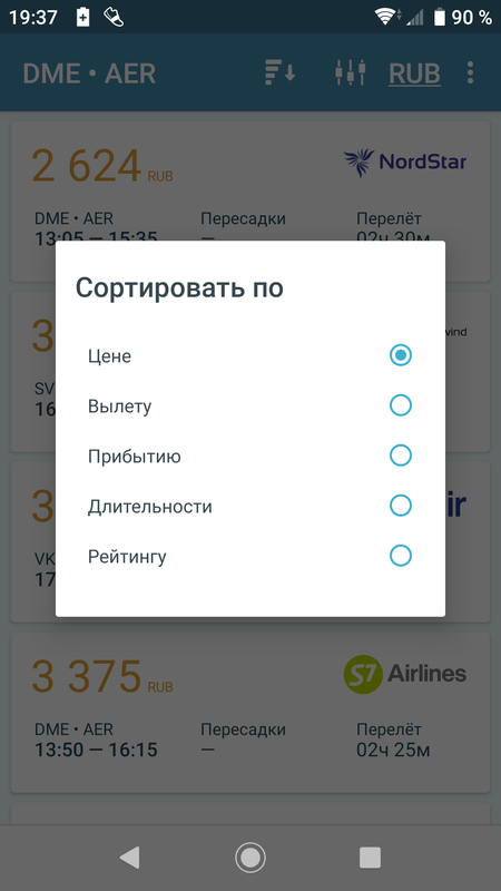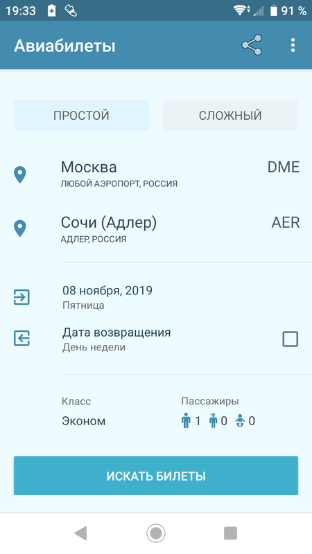 Старая версия приложения по поиску авиабилетов без рекламы