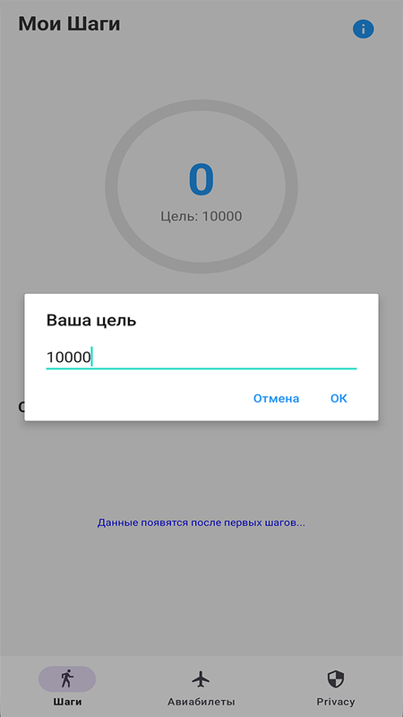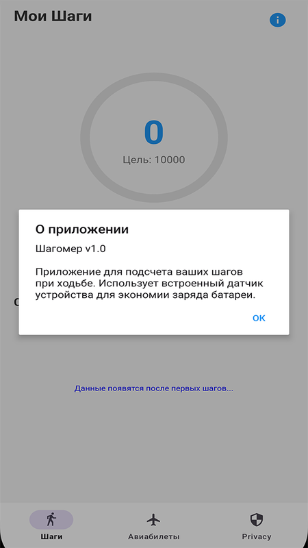 Простое мобильное приложение для подсчета шагов при ходьбе