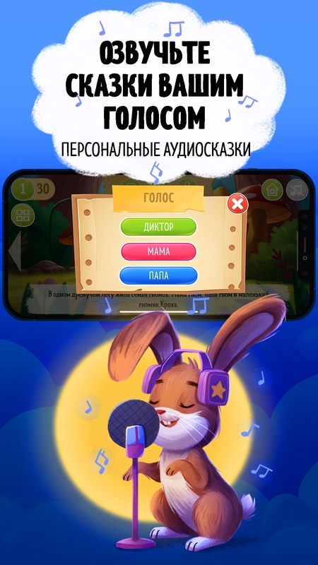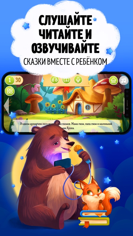 Сказкинсон - это лучший способ организовать ваш семейный досуг с малышом и ощутить момент единения с ребенком. Читайте детские книги вместе, слушайте и озвучивайте сказки, а после этого ваш малыш сможет прослушать личные аудиосказки, озвученные вашим голосом в любое время.