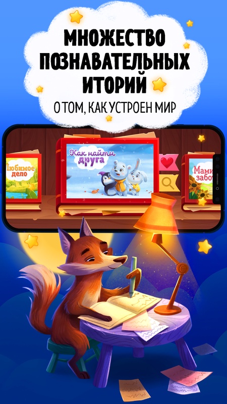 Наше сказочное приложение станет идеальным компаньоном и сбережет место в чемодане в путешествии. Детские книги можно оставить дома и взять с собой только Сказкинсона.