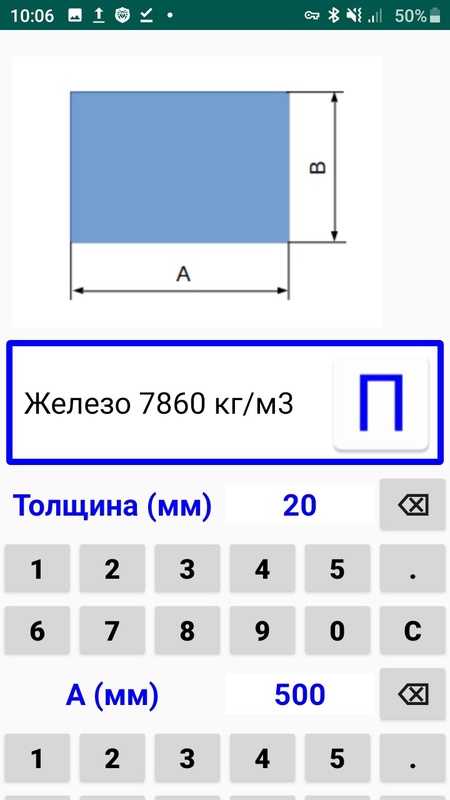Расчёт массы простых по геометрических форме грузов при выбранном материале и вводе размеров.