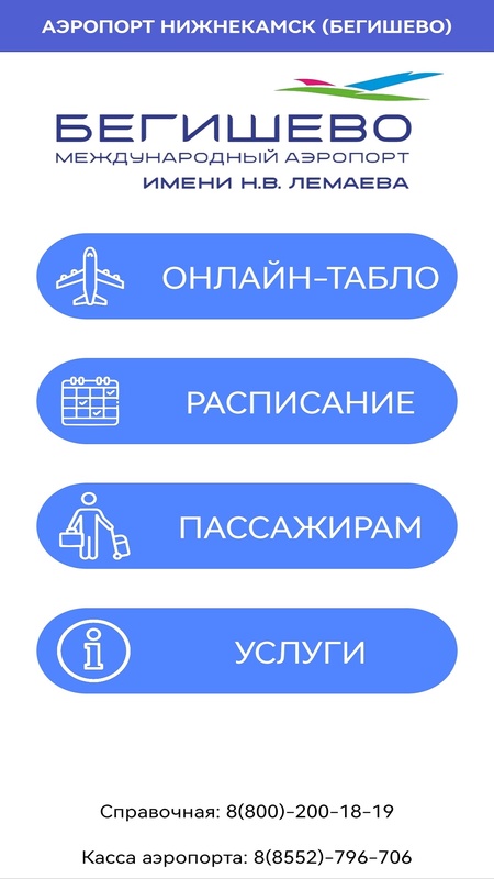 Официальное мобильное приложение аэропорта Нижнекамск (Бегишево)