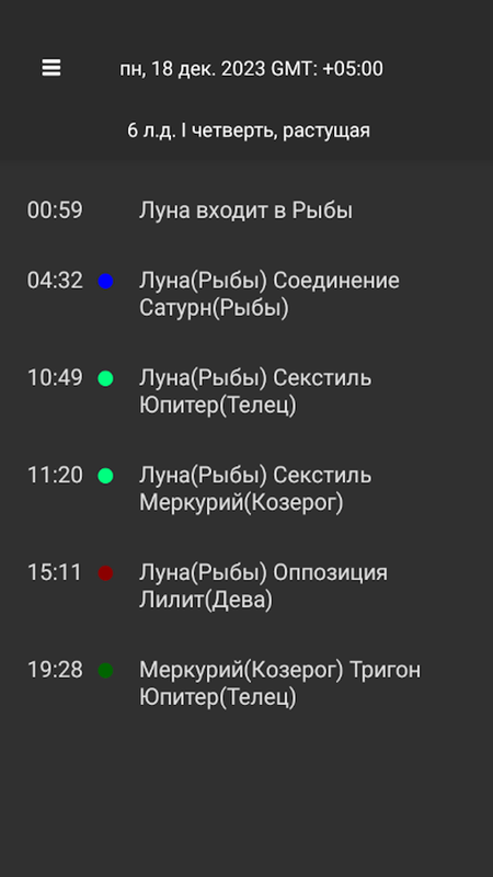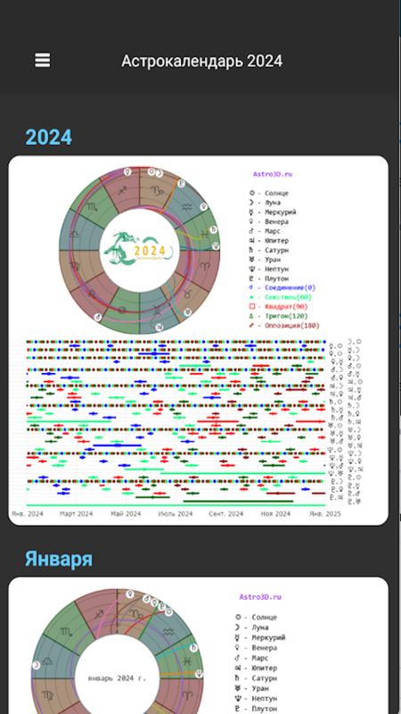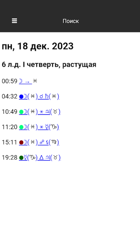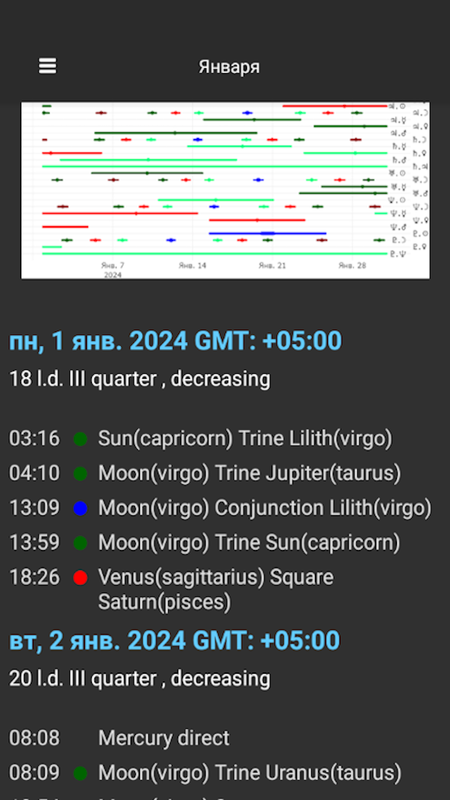 Список астрологических влияний на каждый день, лунных дней, фаз Луны, по времени, с изображениями движения планет по гороскопу и актуальных аспектов, по месяцам и годам, с пояснениями и поиском бесплатных гороскопов в интернете по месяцам, годам, знакам Зодиака.