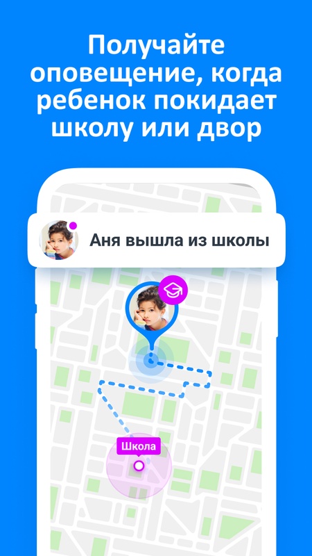 Просматривайте текущее местоположение и список посещенных ребенком мест в течение дня. Геолокация ребенка обновляется в реальном времени.