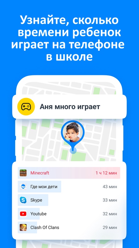 Узнайте, сколько времени ребенок тратит на приложения и игры в школе.